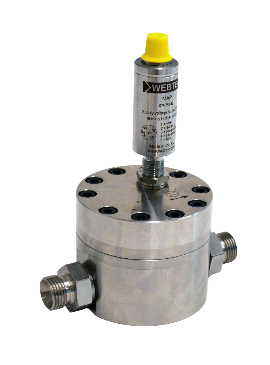 Gear flow meter WEBTEC GF025MAPB6, 0,1-25 L/min, 4-20 mA, 420 bar